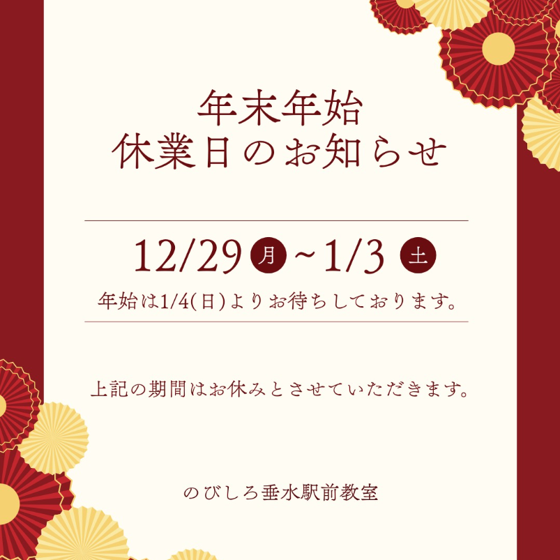年末年始休業日のお知らせ 2025年12月28日 最終更新日時 : 2025年12月28日 admin のびしろ垂水駅前教室です。 今日で今年は最後の支援! 明日からお休みです。 1年ありがとうございました。 年始は1月4日(日)からです。 来年も充実した1年になりますように☺️皆様、良いお年をお迎えくださいね(*^^*) #児童発達支援事業所 #児童発達支援のびしろ垂水駅前教室 #esdm #ASD #ADHD #未就学児療育 #SST #小集団 #個別療育 #teacch #ABA #言葉がゆっくり #保護者支援 #子育て支援 Follow me!